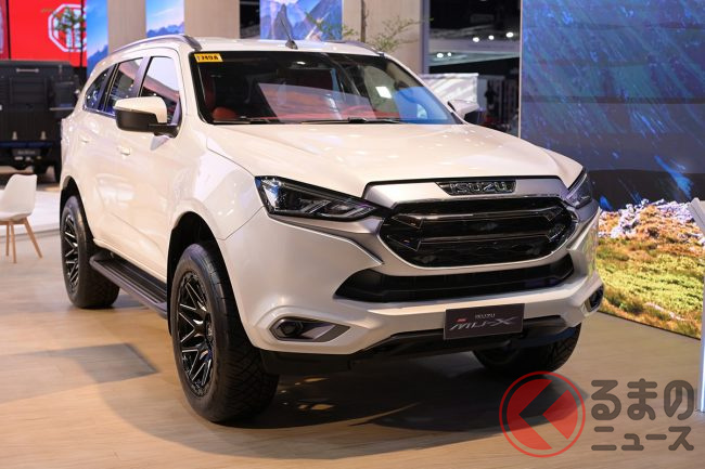 いすゞが最新型「3列シートSUV」を公開! 全長4.8m超えで“精悍顔”がカッコいい! 豪華内装も採用のフラッグシップモデル「MU-X」をフィリピンで実車展示