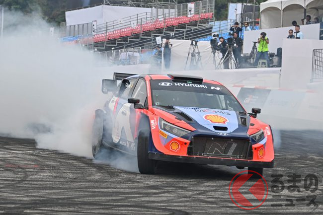 対して、Hyundai MotorsportからはWRCカーの「i20 N Rally 1 HYBRID」やカスタマーレーシング向けの「i20 N Rally 2」。さらに「IONIQ 5 N」「IONIQ 5 N ドリフトスペック」、「Avante N」などで大迫力のドリフトデモランを披露。