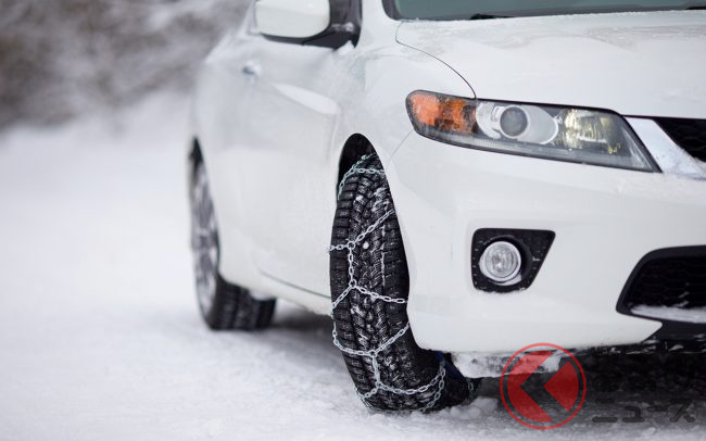 雪道では、タイヤチェーンや冬用タイヤの装着が法律で義務付けられており、ノーマルタイヤで雪道を走行するのは非常に危険です。