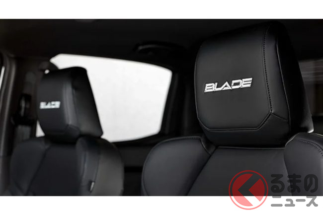 ボンネットやドアには日本刀から着想を得たサテンブラックの専用デカールが備わり、テールゲートには「BLADE」のロゴを装着。ミラーやエンブレム類もブラックの専用品で、全体的に男らしく逞しいデザインへと変更されました。