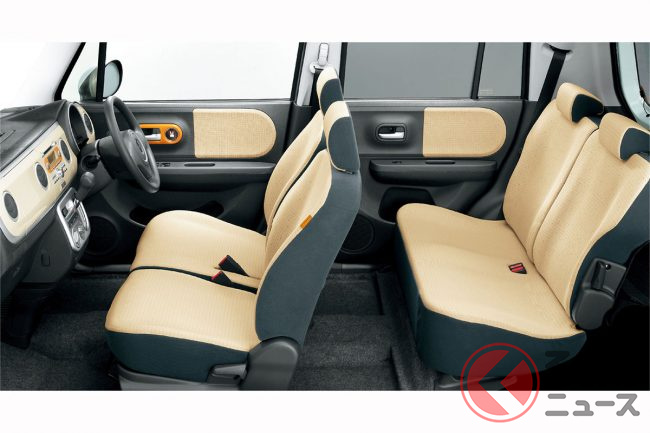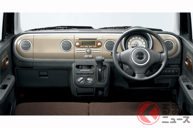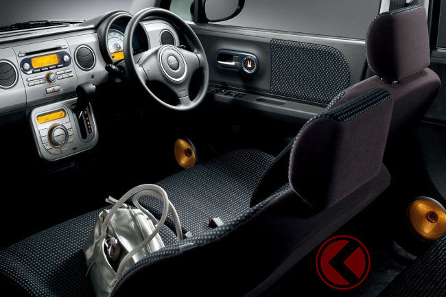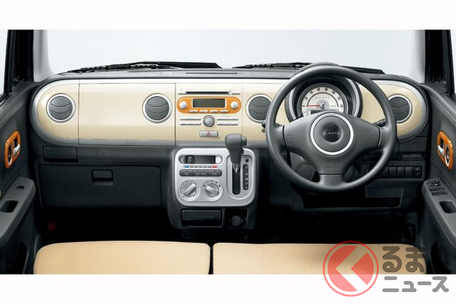 「身近な雑貨や家具のような愛着のもてる道具」という発想のもと、スズキでもっともベーシックな軽ハッチバック車「アルト」をベースにしながら、かわいらしい内外装に仕立てたモデルです。