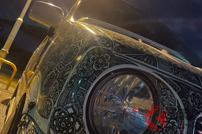 吸排気系にも手を加え、零千チャンバーのエアクリーナーやmooreの4本出しマフラーをつけたほか、イデアルのブレーキシステムキットやタナベのタワーバー、シュピーゲルのダウンサスなど、完全な走り屋仕様になっています。