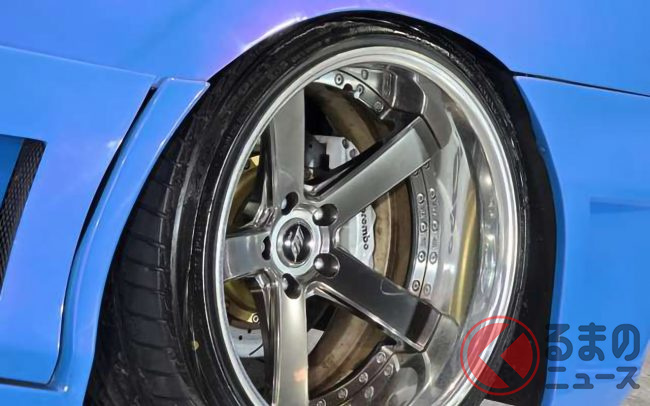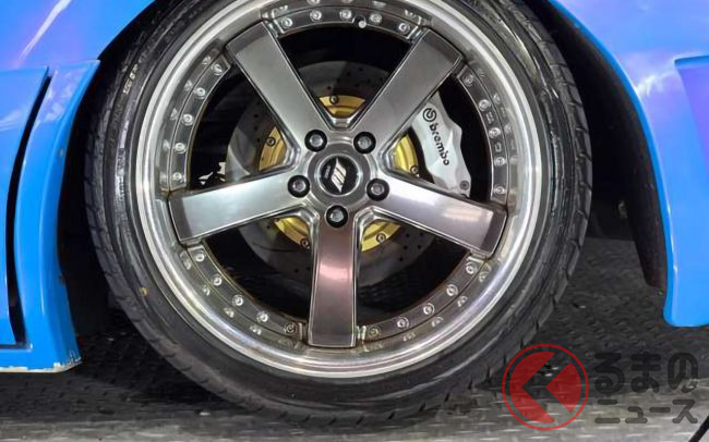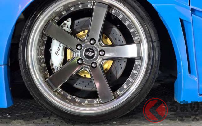 ワンオフ加工のエアロにジーストST219インチアルミホイール、BIGキャリパー&ローターを装着し、走行性能を向上させています。