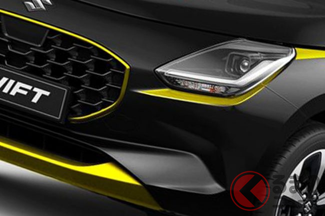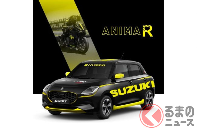 スズキ新型「スイフト“8R”」初公開! 真っ黒×イエローの「バイク仕様」! SUZUKI文字ロゴがスゴイ「スポーティコンパクト」伊国に登場
