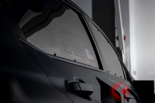 外観は、つや消しブラックのボディやボディサイドやルーフに施された黒い六連星のステッカー、特大サイズのウイングなどで構成され、迫力のある外観を実現。