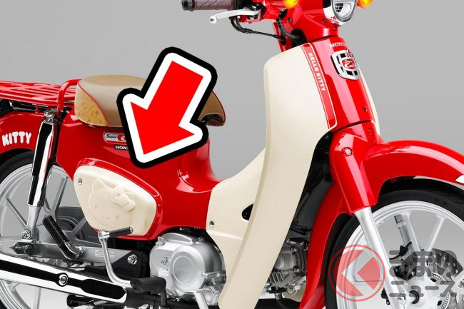 ホンダ新型「スーパーカブ×ハローキティ」初公開! サイドカバーの「飛び出すキティ」が凄すぎ! 超人気の「2大巨頭」奇跡のコラボで発売へ!