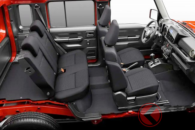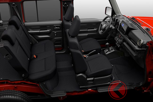 スズキがインドで「ジムニー5ドア」を発売することを発表したプレスリリースには、後席に専用のリアシートと内装を採用した新規の5ドア仕様車で、ボディサイズが全長3985mm×全幅1645mm×全高1720mm、ホイールベース2590mm、エンジンは1.5リッターガソリン、トランスミッションは5速MTと4速ATであることを伝えています。