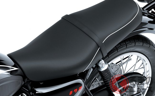 ロングシートやブラック塗装されたスチール製前後フェンダー、スポークホイールを装備し、クラシックスタイルを演出しています。