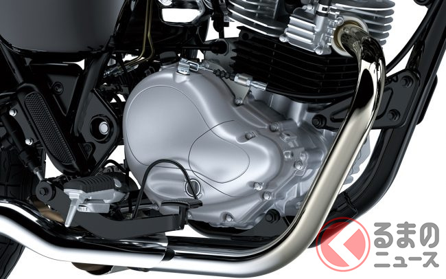 パワーユニットは、クラシカルなルックスを実現させるため、シリンダーヘッドの大きく丸みを帯びたフィンをはじめとし、造形に特別な配慮を施した250cc空冷4ストローク単気筒エンジンを搭載しています。