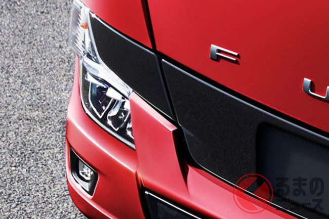 デザインでは三菱ふそう最新モデル共通の「ふそうブラックベルト」の採用に加え、新LEDライトの装備により、精悍な表情をさらに際立たせました。