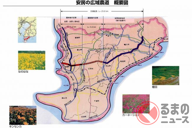 木更津から鴨川方面へ走行がスムーズになる国道410号の「久留里馬来田バイパス」も2024年3月に全通するなど、「ぐるり」以外の道路計画も進展しています。