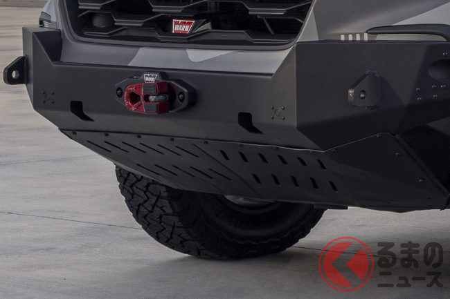 ベース車両から外観が変更されており、屈強なフロントバンパーやスキッドプレートを装備。リフトアップによって最低地上高が高められたことに加え、大径のオフロードタイヤが採用されるなど、タフギア感を強めています。