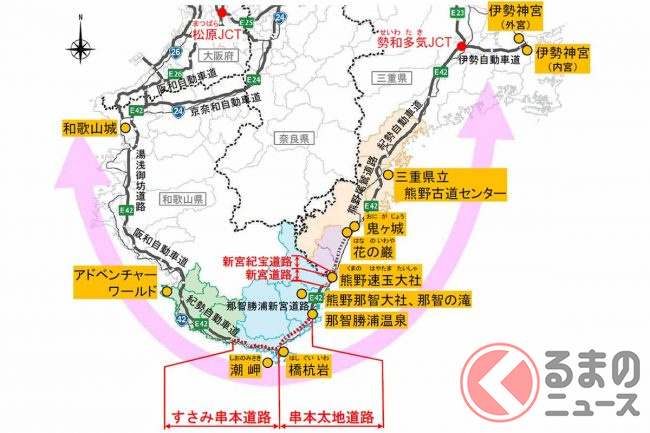 新宮紀宝道路は、いわゆる「紀伊半島ぐるり一周道路」の一環です。