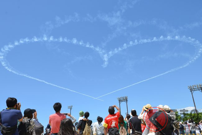 展示飛行エリアは、豊田スタジアム西イベント広場から西側の空を中心に飛行を予定されています。