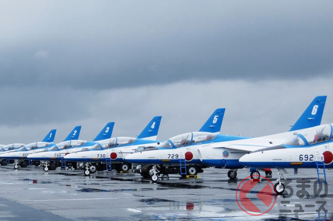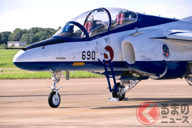 最高速1040キロ!? “ターボエンジン2基”搭載!カワサキ「T-4」が演技を披露!「ブルーインパルス」がWRC2024で展示飛行