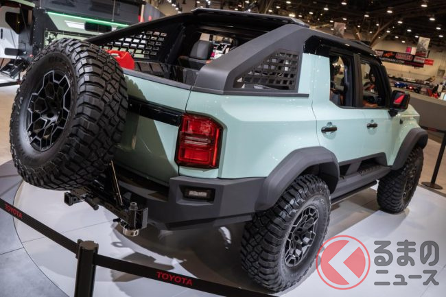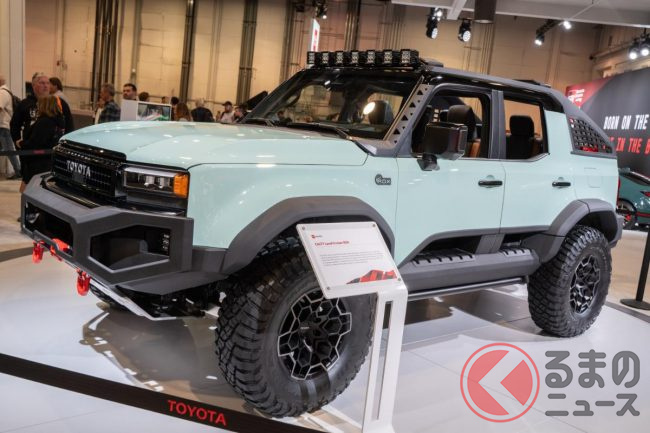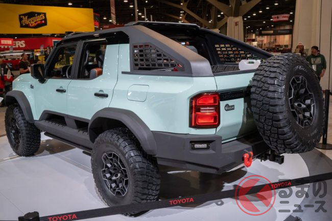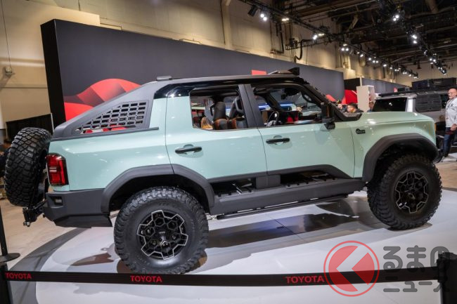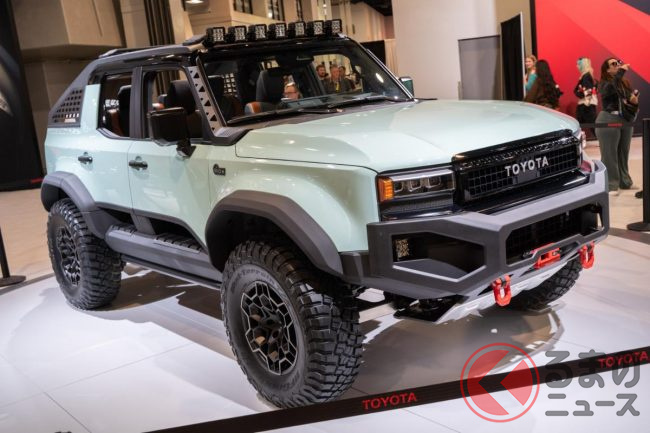 トヨタが新「ランクルオープン」発表! 実車初公開!初代デザイン×斬新ボディ!? 「スケルトンドア」採用の凄いSUV展示、米国で