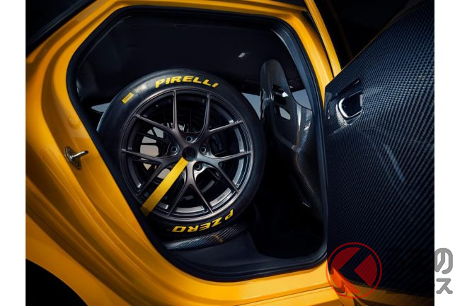 インテリアにも、黒のアルカンターラと色を合わせた黄色のシートベルト、ステッチ、トリムによってさらにスポーティな印象になっています。