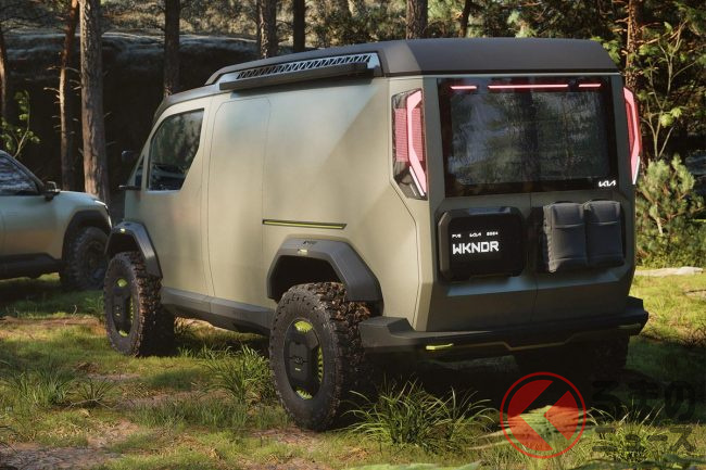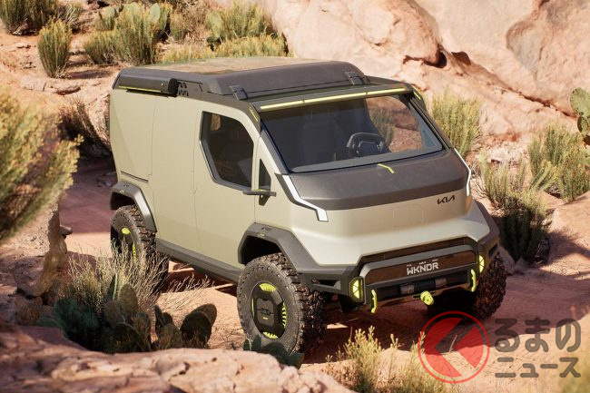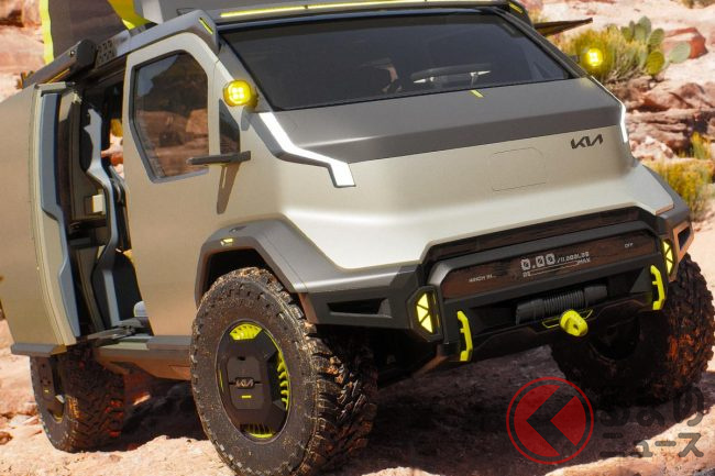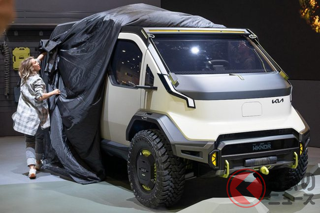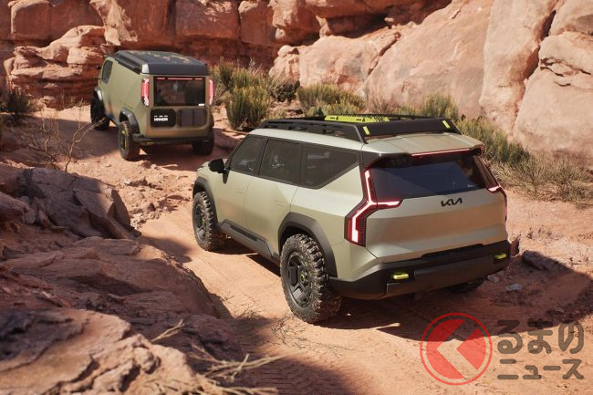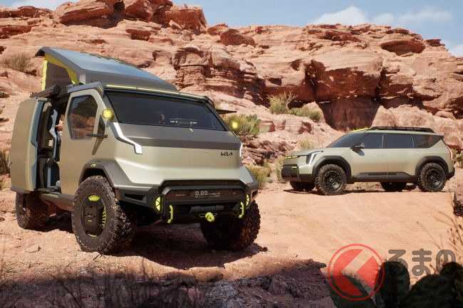 今回KIAが公開したモデルは、オフロード仕様のミニバン 新型「PV5 WKNDR」と、SUVの新型「EV9 ADVNTR」の2台。