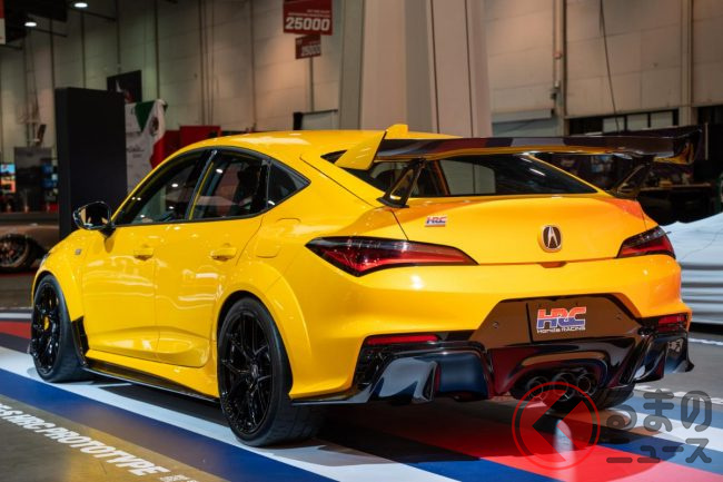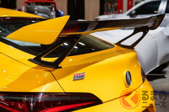ホンダがド派手な新「2人乗り4ドアセダン」実車初公開! 凄い“タイプS”何が凄い!? エアロ&ウイング採用の「HRCなインテグラ」米国に登場で注目