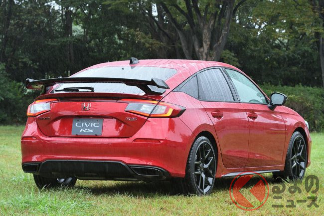 また、2024年9月に出たばかりの「シビックRS」に同じく出たばかりのテールゲートスポイラーを装着した車両です。