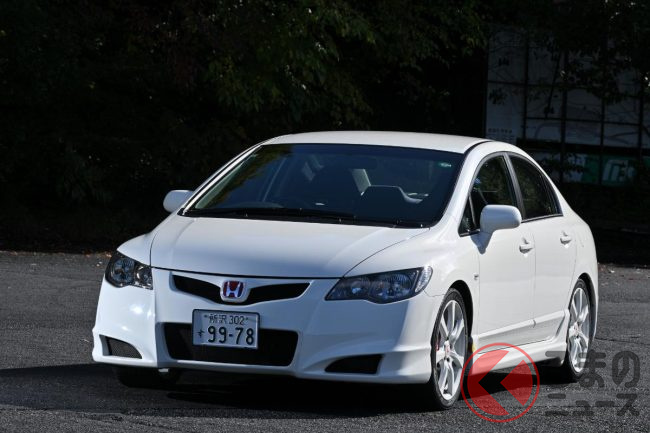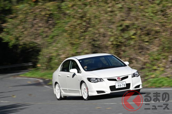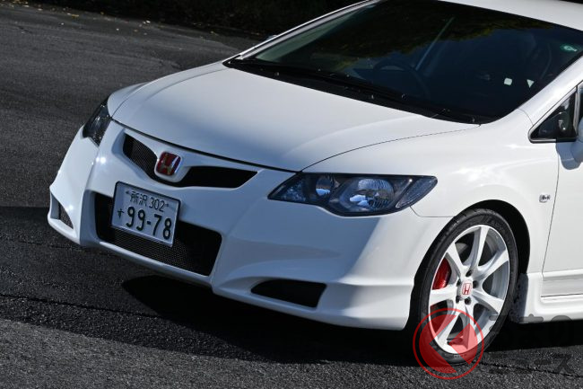 まず試乗したのは、周辺一般道でホンダ「シビックタイプR」(3代目・FD2型)に「モデューロ(Modulo)」ブランドのエアロパーツとスポーツサスペンションを装着した「Sports Modulo CIVIC TYPE R」。