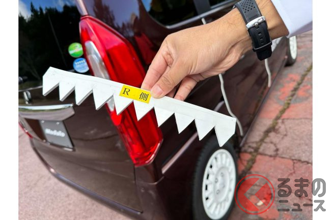 新製品は、タイプR用が好評で標準のシビック用にもぜひ欲しいという声に応えるべく開発されたもので、既存品に対してシェブロン(ギザギザ)形状の“実効空力”デバイスを搭載しているのが特徴です。現物を見比べると形状とサイズがだいぶ違うことも印象的でした。