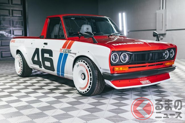 「ハコスカ」顔の「“爆速”サニトラ」!? 丸目4灯の「“伝説級”旧車デザイン」が超カッコイイ! 日産の最新パワトレ搭載「サニートラック プロジェクト」とは