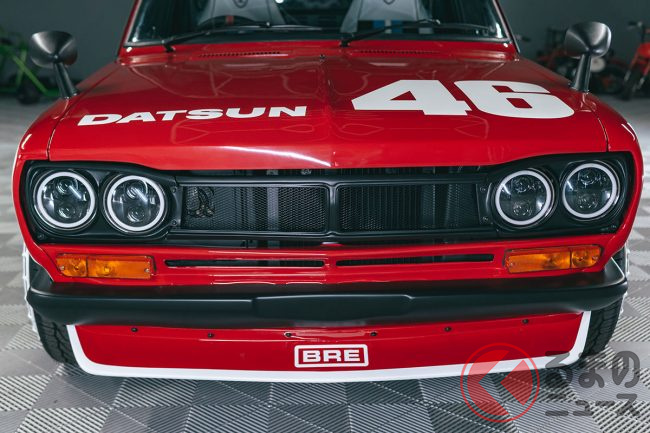 カラーリングは、1970年代にダットサン「510(ブルーバード)」や「Z」などで大活躍した米国のレーシングチーム「BRE(ブロック・レーシング・エンタープライズ)」を模したもので、46番のゼッケンも当時風の仕上がりです。