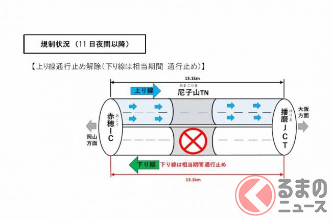 いまのところ、通行止め解除の見込み時間は発表されていません。