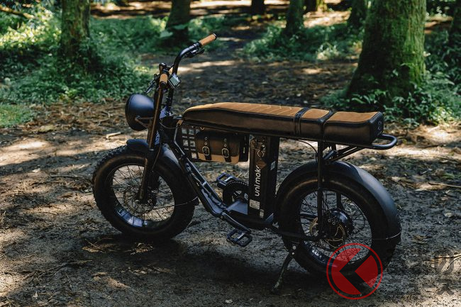 ベースとされるユニモーク MKは、1970年代のビンテージバイクにインスピレーションを得て生み出されました。丸型ヘッドライト、ロングシート、パイプフレームからなるシンプルなデザインです。