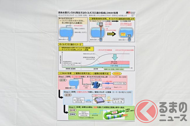 また前述の発電で使いきれなかったボイルオフガスは、これまでと同様に触媒を通じて水蒸気に変換し、車外に安全に放出されるようです。