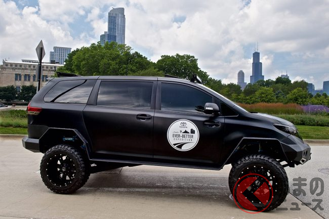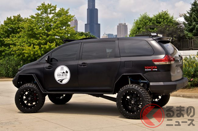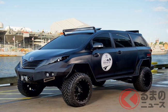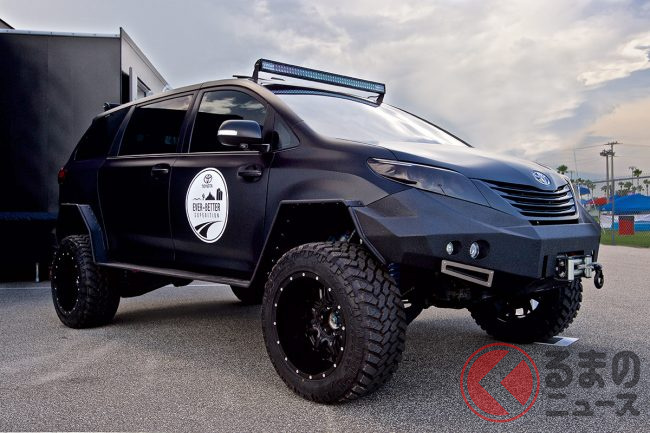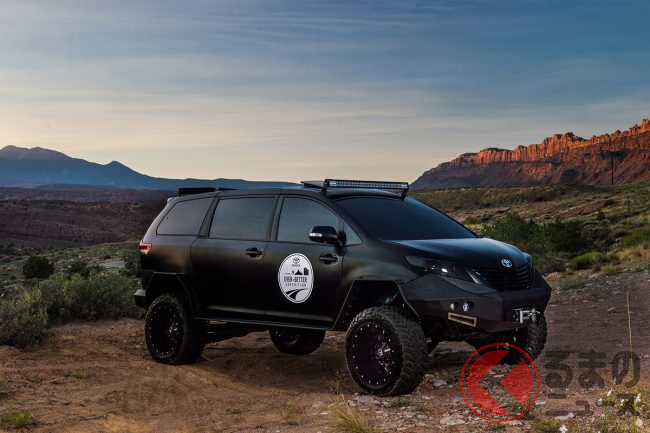 トヨタ「“SUV”ミニバン」がスゴイ! ド迫力の「斬新ドア」×巨大オフロード4WD! タフすぎる「シエナ」“冒険”仕様とは