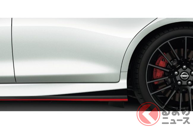 エクステリアでは歴代スカイラインをオマージュした意匠を取り込んだ専用バンパーなど、特別感のある仕上げとし、ボディカラーは「NISMOロードカー」シリーズに共通するステルスグレーを設定。各部にはNISMO共通のレッドアクセントを施しました。