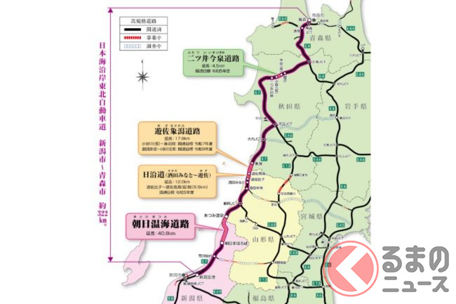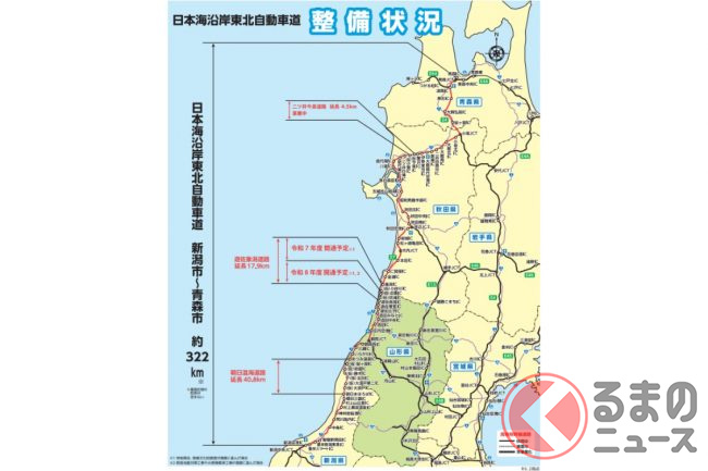 新潟~青森直結 壮大な「日本海東北道」全通まであと少し!? 約320kmの「すごい高速」最後の未開通部どこまで工事進んだ?