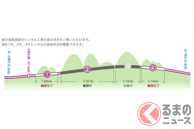 気になる進捗ですが、2013年に事業化してから11年目。開通めどのカギを握るのは、総延長10km以上にもおよぶ13本の連続トンネルです。