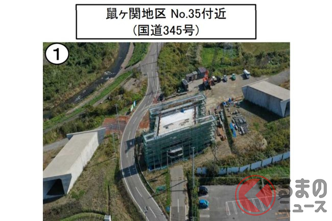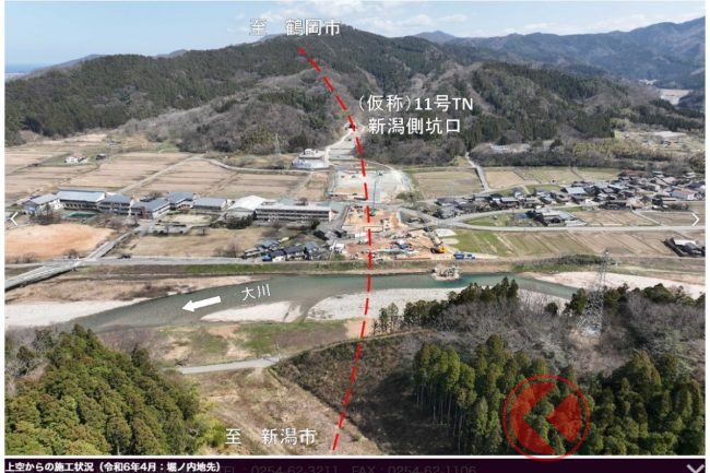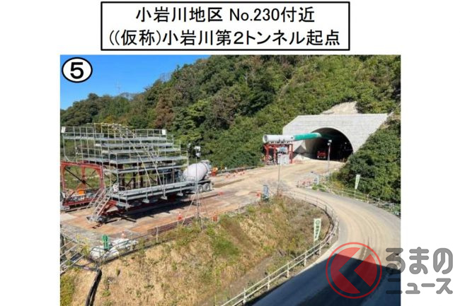 13本のトンネルのうち、掘削完了したのは1号トンネル(1007m)、4号トンネル(1185m)、9号トンネル(332m)、大岩川トンネル(1058m)。掘削中なのは、2号トンネル(32%)、11号トンネル(58%)、鼠ヶ関トンネル(59%)、小岩第2トンネル(69%)です。