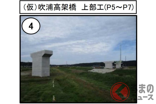 それ以外の谷筋の平地でも、高架部の橋脚がニョキニョキと姿を現してきました。