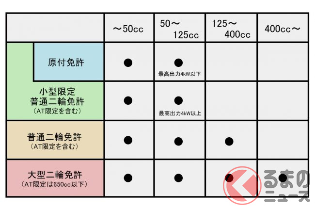 しかし2025年4月からは法改正により、総排気量125cc以下のバイクであっても最高出力を原付と同等レベルの「4キロワット以下」に制御したものであれば、原付免許で運転できるようになります。