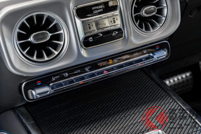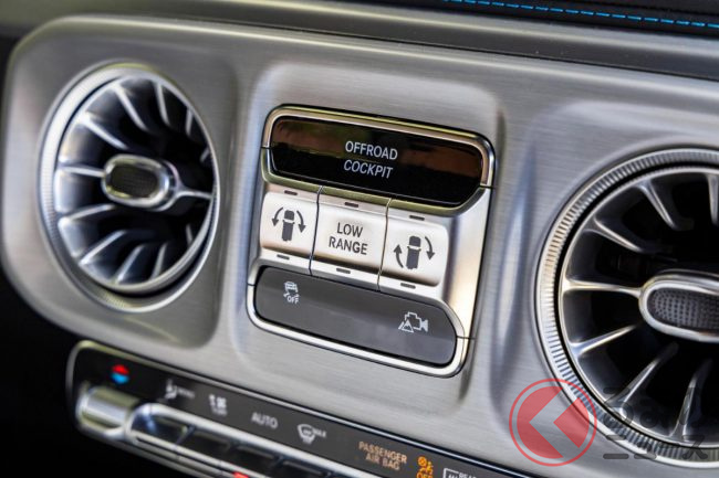 インテリアも、通常のGクラスと同様ですが、G580固有の機能である“G-TURN”や“G-STEERING”の起動スイッチが備えられています。