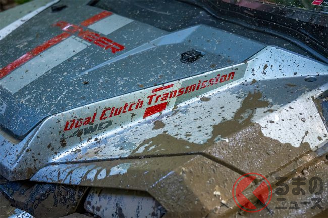 パイオニア1000は、全長116.9インチ×全幅62.8インチ×全高77.3インチ(全長2970mm×全幅1595mm×全高1963mm)という小さなボディに、1リッターエンジンと6速DCTを搭載。