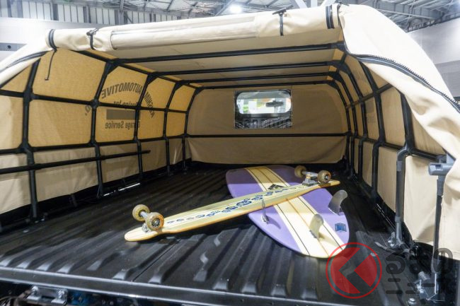 具体的な改造箇所はデッキ後部。こちらに幌を取り付けることで、SUVのようなフォルムになっています。ただ、幌は柔らかなベージュなので、意外に可愛らしさもありました。
