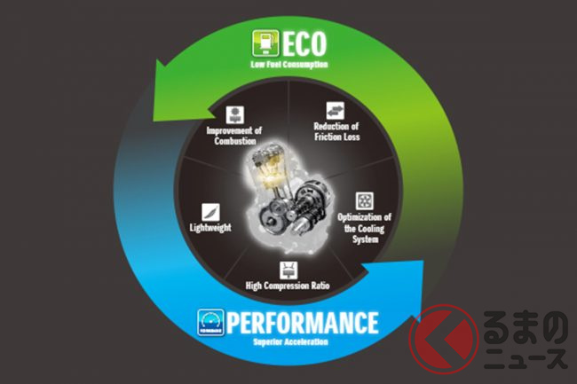 軽量でコンパクトなエンジン設計により、低回転域では粘りのあるトルクを感じ、中高回転域では気持ちの良い加速感を実現しました。