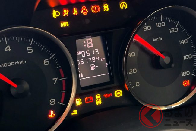 クルマのメーター内に「光るカメ」出現! 「青いイカ」や「コーヒーカップ」も!? 点灯したらマズい? 新種の「警告灯」どんな意味?