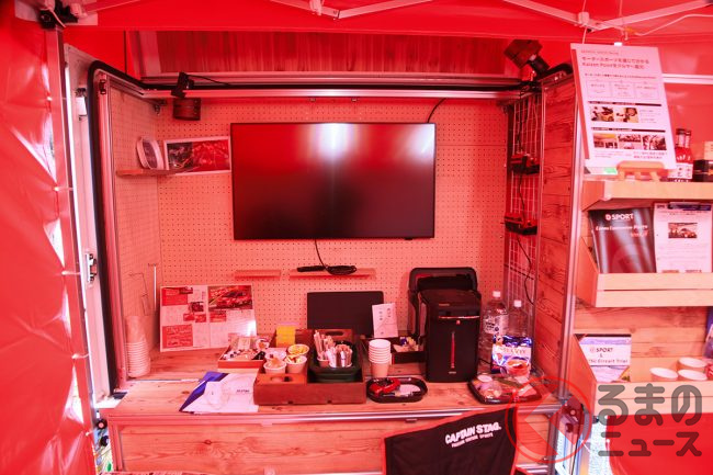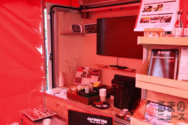 ちなみにD-SPORT Racing Teamのサービスパーク内には、軽トラックの荷台に設置でき、簡単に店舗運営が可能な「Nibako(ニバコ)」サービスで使用する「荷箱」を設営。