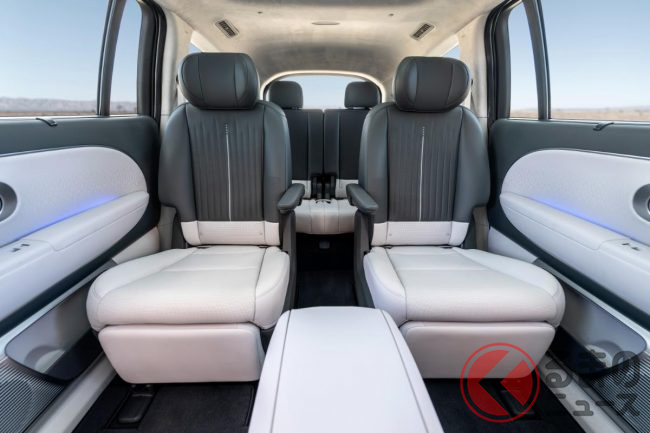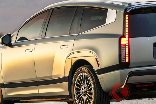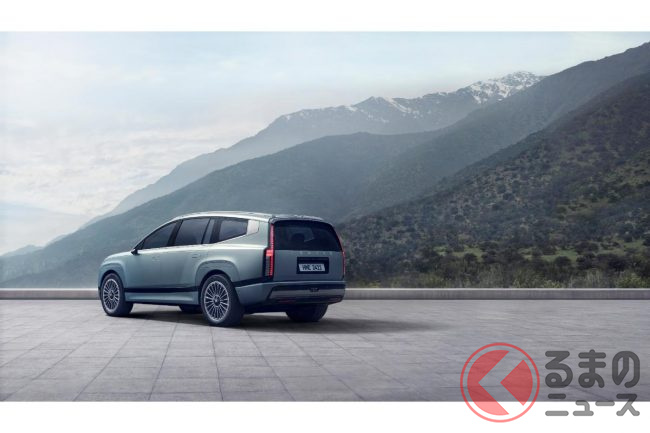 全長5m超え! 新型「最上・最高級SUV」世界初公開! 奇抜な“一文字ライト”&「3列7人乗り」豪華ラウンジ風内装採用! “メーカー初の機能”も搭載の「アイオニック9」発表!