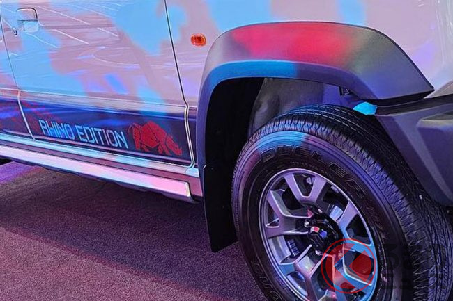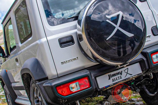 フロントグリルは「5スロット」タイプからSUZUKIロゴ入りタイプに変更。またシルバー調のバンパーアンダープロテクター、ブラックのサイドドアプロテクターを装着し、タフなヴィンテージテイストを強めています。