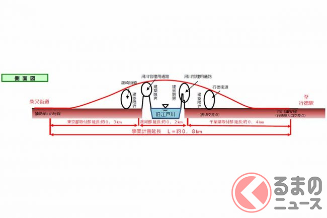 とはいえ、昭和時代からあった都市計画道路が、ようやく本格的にスタートした形です。都内有数の「橋空白地帯」のまま残されていた瑞江~行徳エリアに、ようやく交流の架け橋が誕生することとなります。