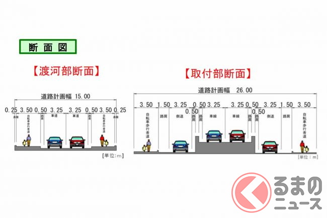 事業期間はひとまず「2031年度」までとなっていますが、用地取得や工事の状況で変わる可能性もあります。特に千葉県側では都市計画幅まで広げる必要があるほか、堤防沿いにある「湊水神宮」をどうするのかといった話もあります。