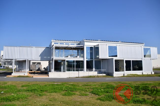 正門をくぐるとすぐに見えてくるPARK棟は、「つながる」「出会う」「ひらめく」のすべてができる空間・場所がテーマとなっており、みんなが楽しく集まれるようにという社員の思いを取り入れて設計された建物となっています。建築コンテナを採用した立体的かつ個性的な外観は、それだけで一歩先の自由な働き方が想像できるように感じました。