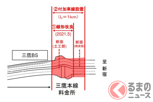 中央道の「地獄渋滞ポイント」ついに「3車線拡幅」着工へ!? 大混雑の「三鷹バス停」で対策工事がスタート間近 「すぐ完成」にならない複雑な事情も!?